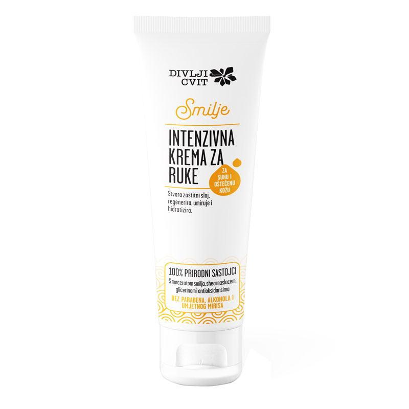 Ruke su ogledalo zdravlja i zahtijevaju posebnu njegu. Zbog toga je napravljena ova ultrabogata krema s maceratima smilja i nevena te karite maslacem za intenzivnu zaštitu i regeneraciju kože. Dodatno je obogaćena CO2 uljima ružmarina i vitaminom E koji su izuzetno jaki antioksidansi. Iako je raskošne teksture i sadrži biljni glicerin koji ostavlja zaštitni sloj na rukama krema se brzo upija i ne ostavlja masni trag na koži. Izuzetno dobra i djelotvorna krema za njegu suhe i oštećene kože na rukama.